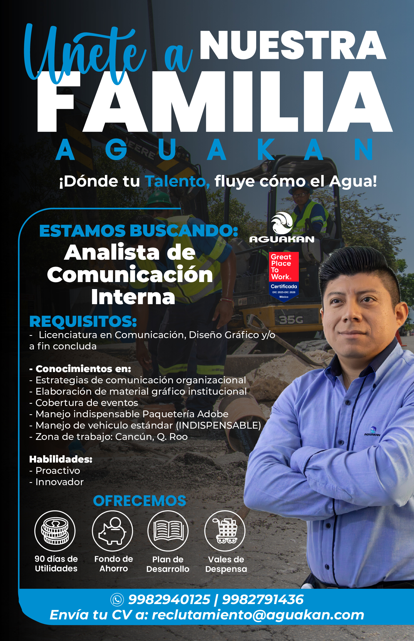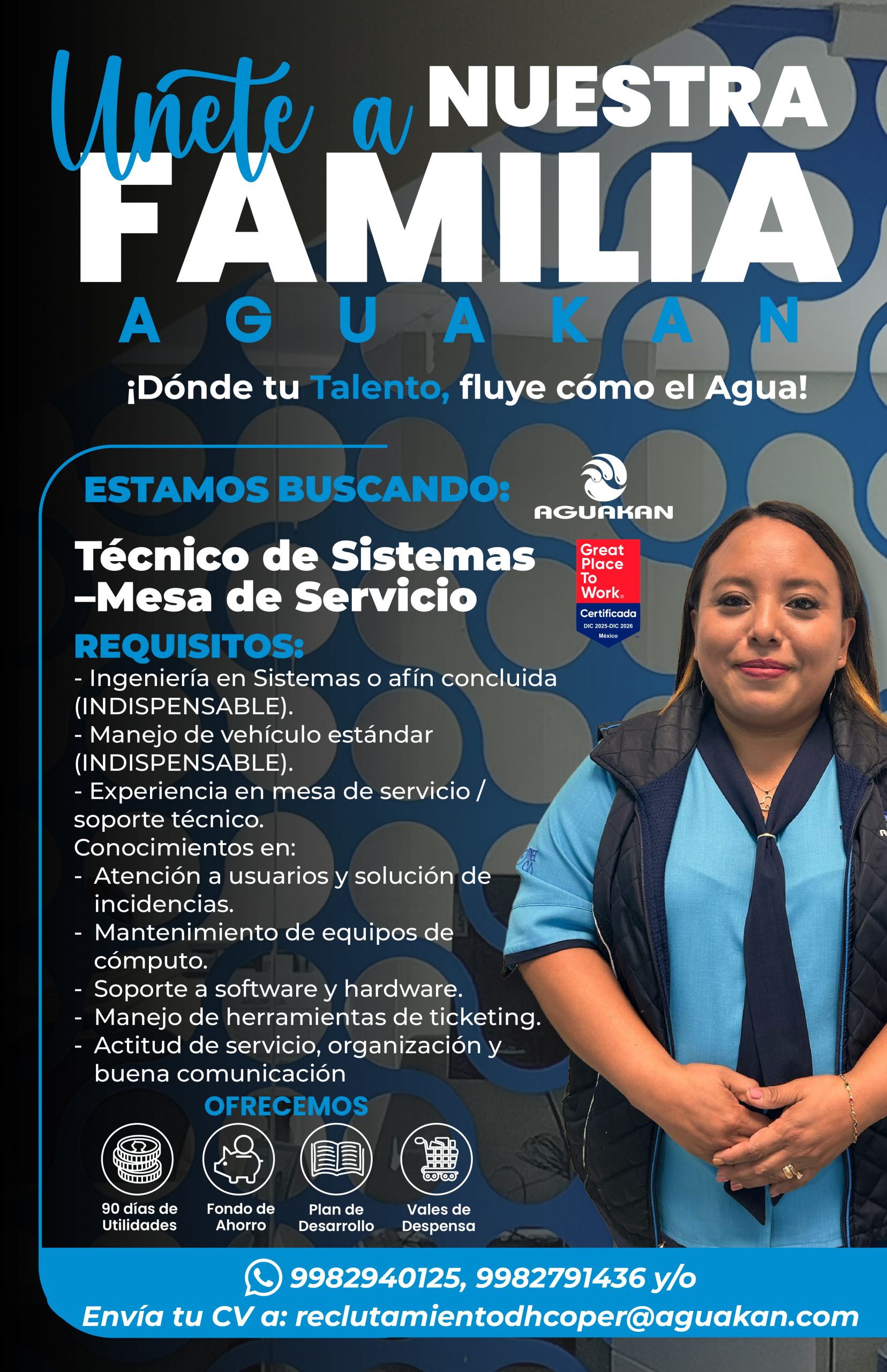 📩 Y/o envía tu CV a: reclutamiento@aguakan.com